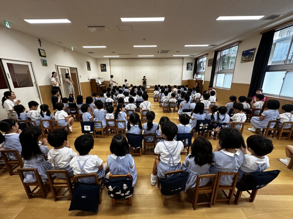 ゆり組は「まつぼっくり」、光組は「アイスクリームのうた」、枝組は「たいふうのあと」を元気に歌いました♪