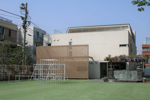 2013年に園舎が建て直され、開放感のある人工芝の園庭で、毎日園児たちが元気よく駆け回って遊んでいます。